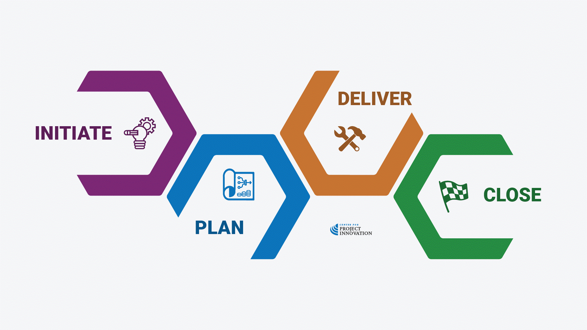 In the model he described, the stages of a project—initiation, planning, delivery, and close—happen one after the other, in a single, downward flow. You don’t move to the next stage until the current one is done.